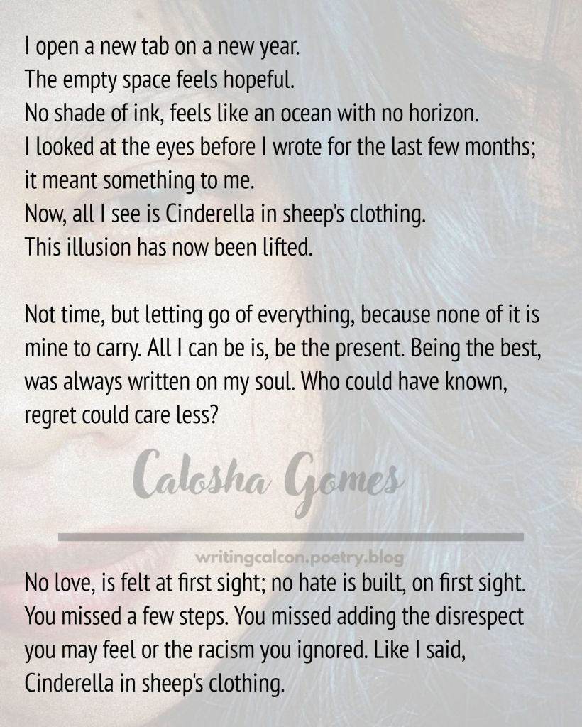 No love, is felt at first sight; no hate is built, on first sight. You missed a few steps. You missed adding the disrespect you may feel or the racism you ignored. Like I said, Cinderella in sheep’s clothing.